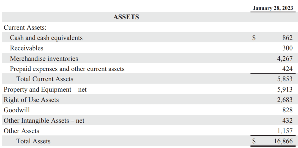 What jumps out here is the value of P&E, which is valued higher than Macy’s total current assets.