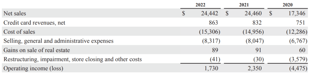 First of all, I want to highlight the top of the income statement from Macy’s 2022 Annual Report.